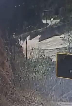 Görüntülerde; kontrolden çıkan otomobilin yoldan çıkıp, dereye uçtuğu, metrelerce yükseğe suyun fışkırdığı anlar yer aldı.